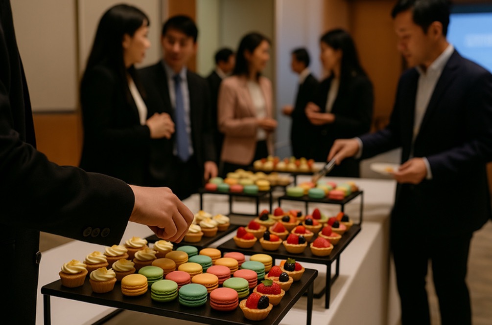 168,000元方案中已包含基本茶點,如來賓人數增加,或希望提升點心多樣性與品牌定調,可進一步加購甜點吧、自助茶水區、定製包裝飲品等,增加互動與社群拍照意願。